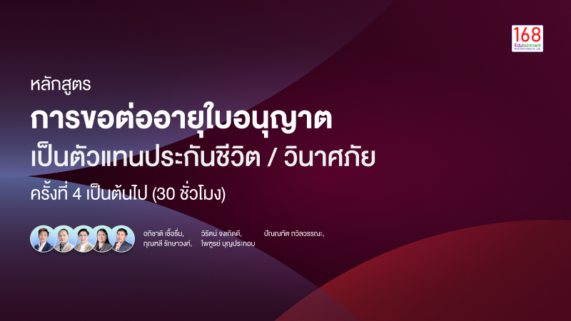 หลักสูตรอบรม 9 วิชา ขอต่ออายุใบอนุญาตประกันภัยครั้งที่ 4 (ต่ออายุ 5 ปี ครั้งที่สองและครั้งต่อไป) รวม 30 ชั่วโมง