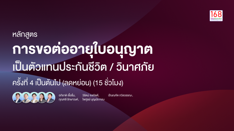 หลักสูตรอบรม 4 วิชา ขอต่ออายุใบอนุญาตประกันภัยครั้งที่ 4 (ต่ออายุ 5 ปี ครั้งที่สองและครั้งต่อไป) รวม 15 ชั่วโมง